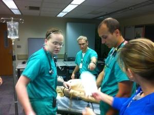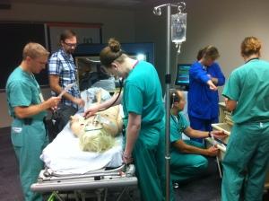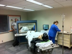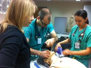 In the simulation session shown below, in the current facilities, Dr. Danielle Hart, ED faculty physician and Director of Simulation, was assisted by two physicians and three nurses to train two four-person teams of ED residents.