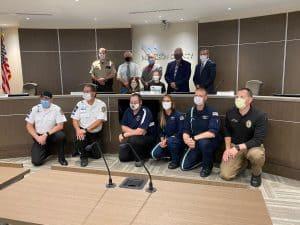Nick Simpson, MD, an HCMC emergency room doctor who treated Dalton stated, "You could not ask for a better outcome or better actions taken every step along the way with this case and with young Dalton who sits her before us today," as he attended a recognition event at a Morrison County Board meeting for Dalton and the entire team who cared for him (right - Dr. Simpson is bottom right, Dalton is seated).